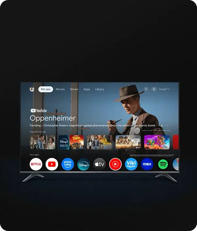 Google TV OS with voice control, Chromecast and AirPlay for seamless media streaming.