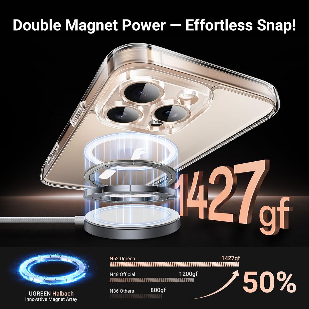 38 NB52 Magnets: The case is equipped with 38 strong?NB52 magnets, ensuring?secure MagSafe charging?without any interruptions. Compatible with?MagSafe accessories?such as wireless chargers, power banks, and car mounts.