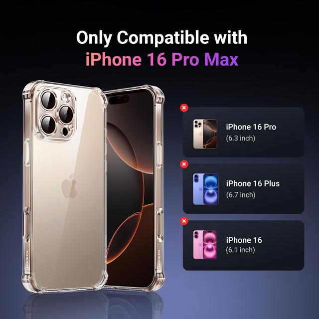 Ugreen Glossy Padded Protective Case for iPhone 16 Pro Max, Clear