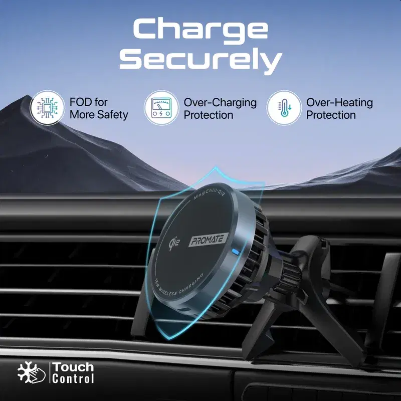 Introducing MagChill-Qi2, the ultimate 15W MagSafe-compatible Charging Car Mount designed for unparalleled convenience and safety on the road. Featuring the world's first semiconductor refrigeration system, it rapidly cools mobile phones by up to 15 degrees during charging, effectively preventing overheating issues in hot car environments. But what sets MagChill-Qi2 apart is its Qi2 certification, ensuring compatibility with the latest Qi wireless charging standards for optimal performance and reliability. This means you can count on fast wireless charging at 15W max for a wide range of device, including iPhones. With N52 strong magnets and an anti-shake design, it offers secure mounting and stability on any terrain. Enhanced safety features include F.O.D (Foreign Object Detection) technology, protecting against over-charging and overheating caused by foreign, metallic objects. Its cradleless 360° rotation and universal compatibility provide unmatched flexibility for hands-free driving. Elevate your driving experience with MagChill-Qi2, keeping your devices cool, charged, and secure wherever you go.
