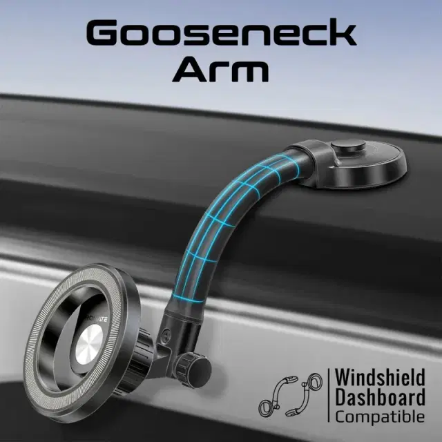Experience effortless and secure device mounting with MagHoop-GN, featuring perfectly aligned N52 magnets for a hassle-free journey. Enjoy optimal viewing angles on the go with its 360° rotatable design, ensuring distraction-free driving. The quick and secure installation makes using this mount a breeze. The cradleless and gooseneck arm design adds a touch of style to your car's interior, making MagHoop-GN the perfect blend of functionality and aesthetics.