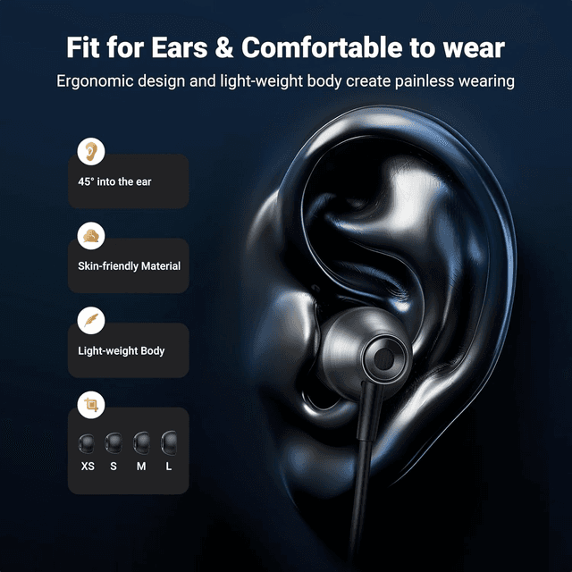 Ergonomic Design: Semi-in-ear fit with an ergonomic design that distributes pressure, providing all-day comfort and reducing discomfort during use.