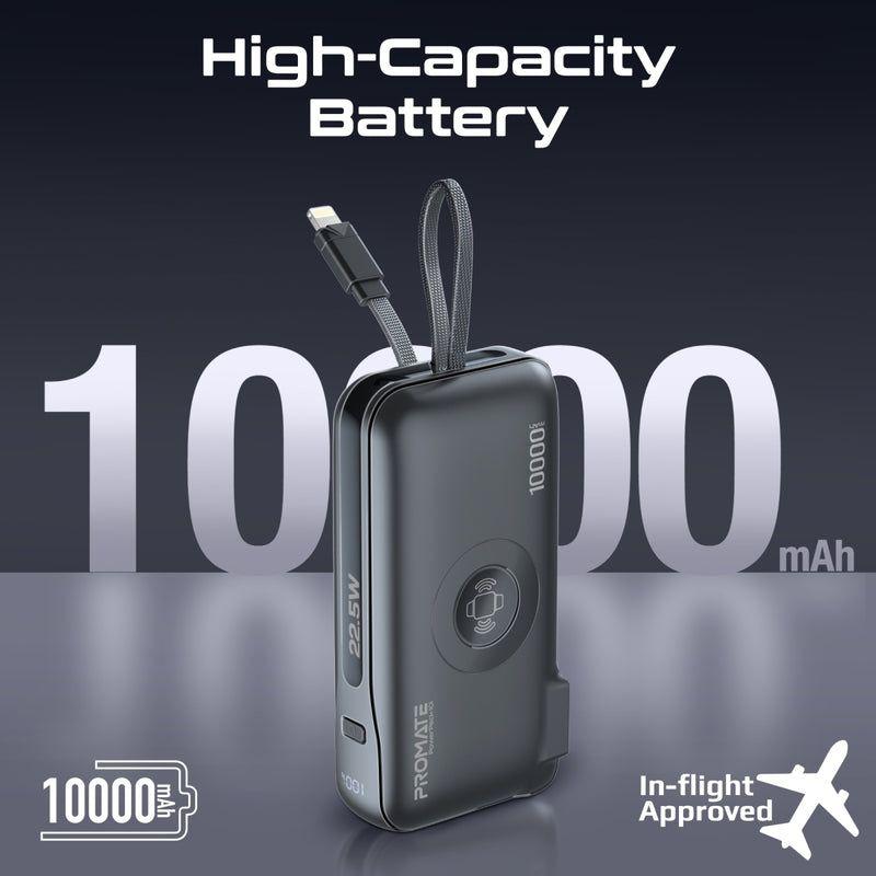 10,000 mAh capacity for multiple charges on the go.