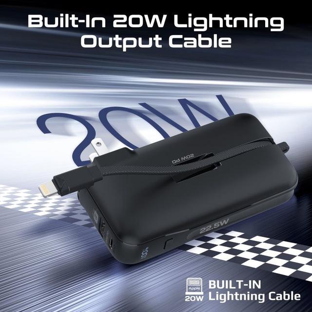 Built-in Lightning Cable: up to 20 W