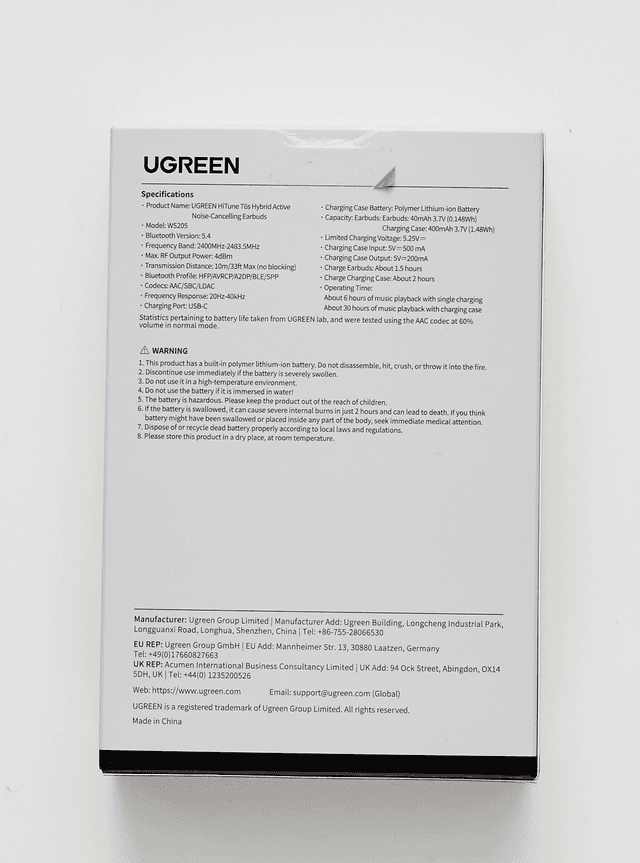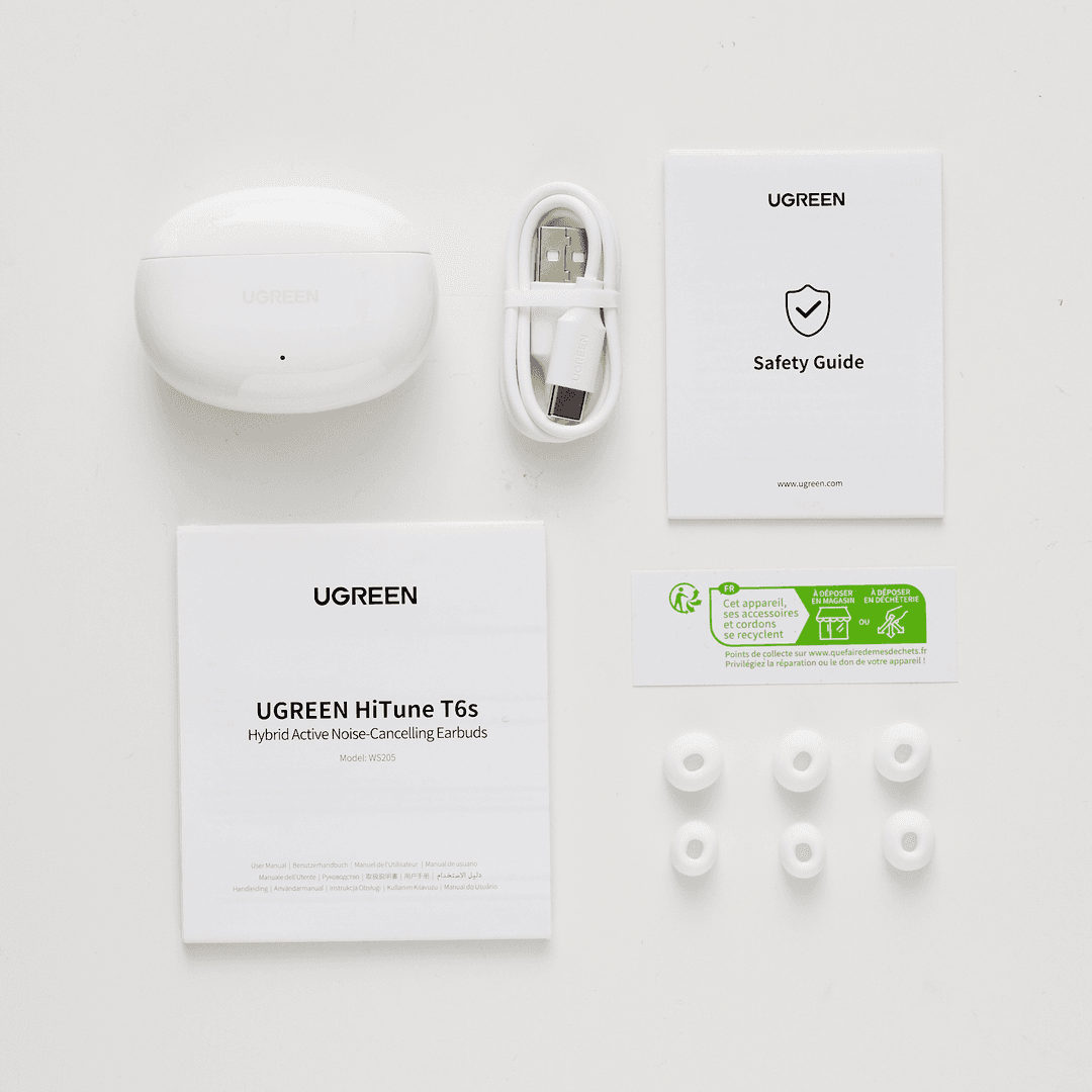 UGREEN WS205 Hyton T6s Dual Active Noise Cancelling Earbuds, White