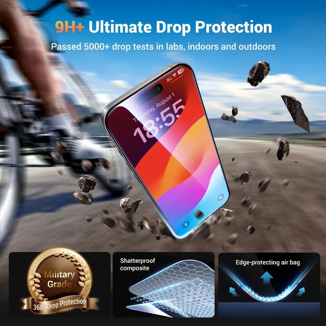 Made of tempered glass with a hardness rating of 9, which resists scratches, drops, and abrasions.