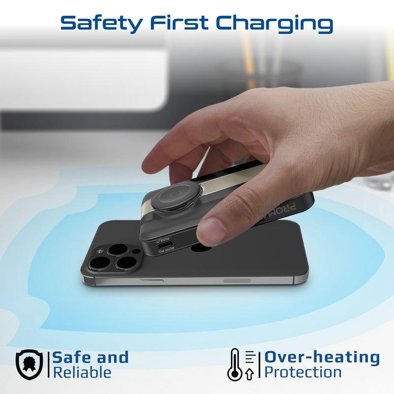 Advanced protection system including over‑charge, overheating prevention, and foreign object detection.