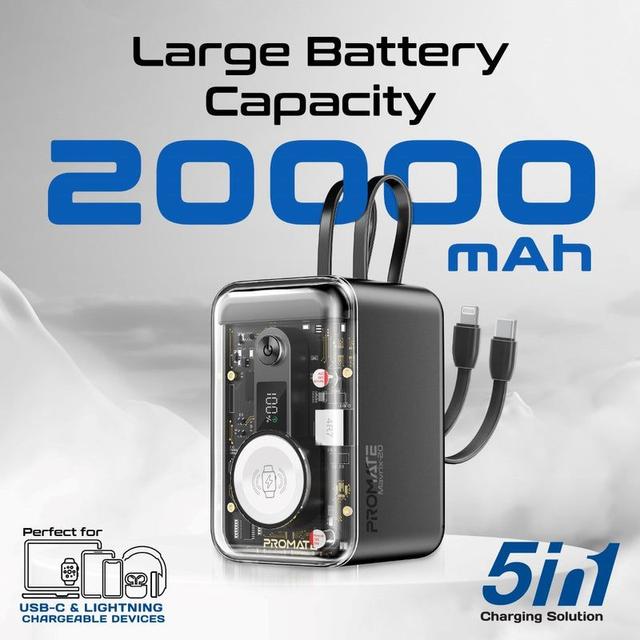 Capacity: ~20,000 mAh / ~73 Wh