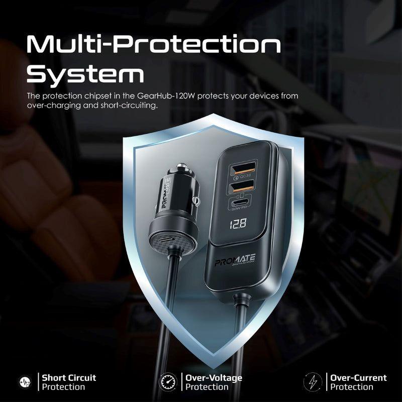 GearHub‑120W – 120W RapidCharge Car Charger with Backseat Charging Hub