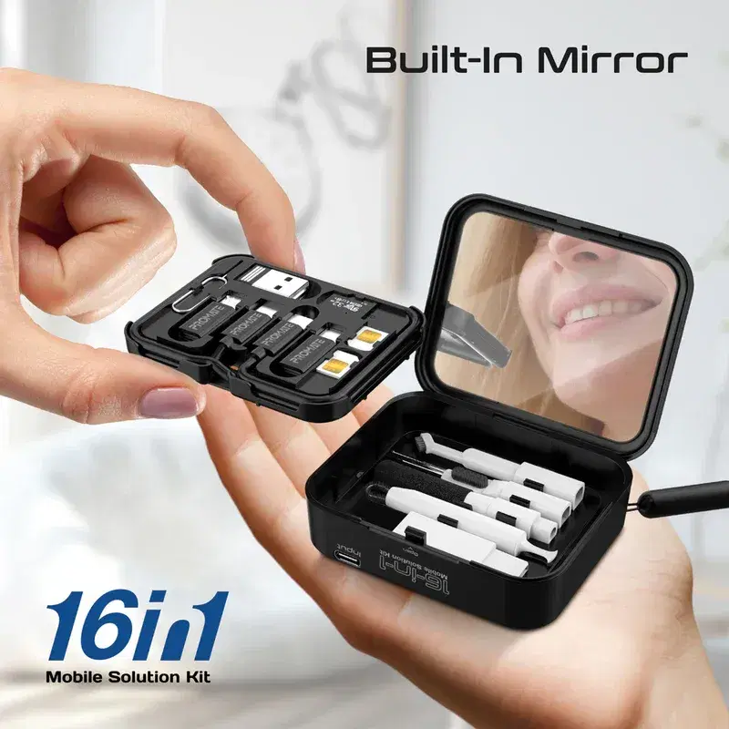 What truly sets AuraKit apart is its premium cleaning kit – a full suite of brushes and tools to clean your charging port, earbuds, and screen with surgical precision. Crafted in durable ABS and weighing only 100g, it fits easily in your pocket, backpack, or desk drawer.