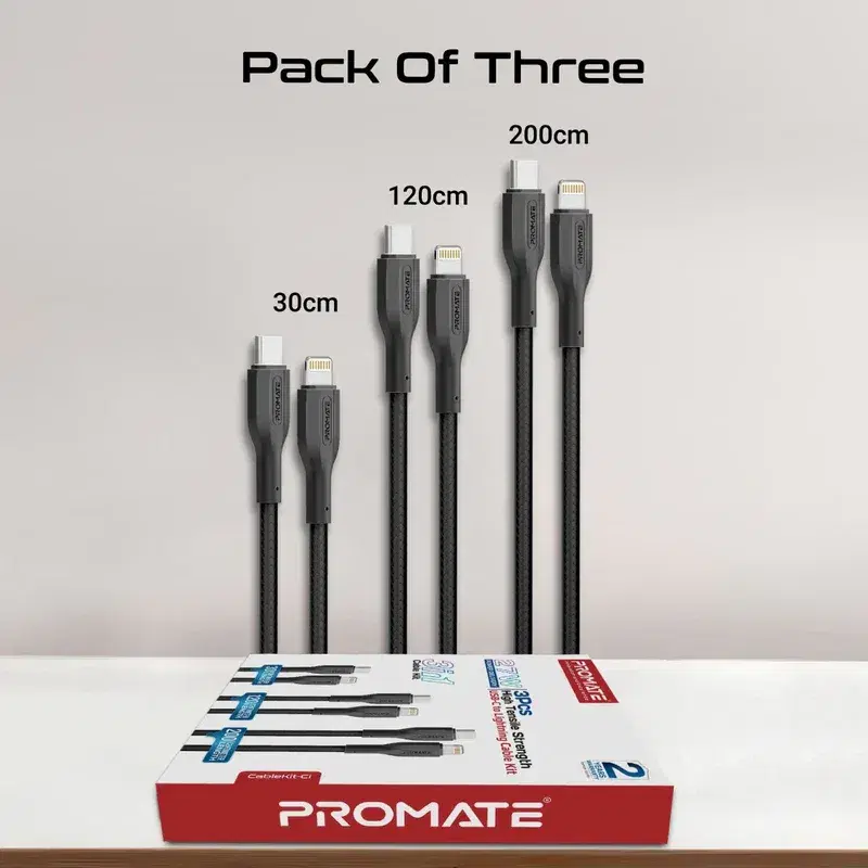 27W Power Delivery 3Pcs High Tensile Strength USB-C to Lightning Cable Kit