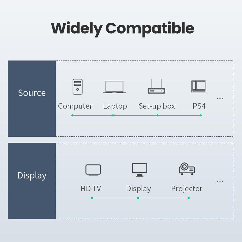 Wide compatibility allows you to use the cable with devices such as laptops, consoles, TVs, monitors, or projectors. Customize the working mode to suit your needs: mirror mode allows you to display the contents of your computer's screen on an external screen, and extended mode allows you to expand your workspace with an additional screen.