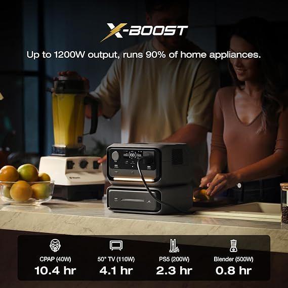 High Power Output: Delivers up to 1200W with X-Boost, easily running 90% of home and outdoor appliances.