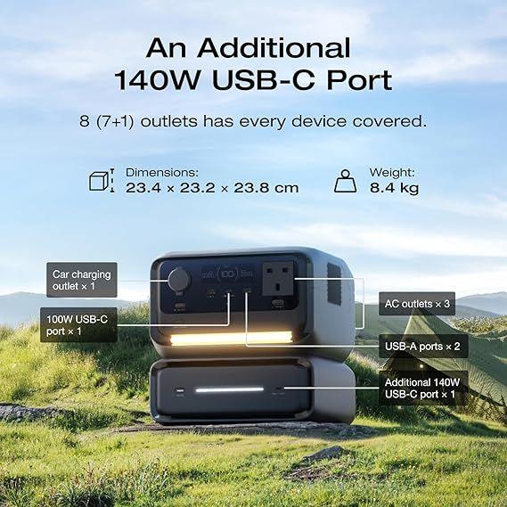 Outlets: 8 (3 AC, 2 USB-A, 1 USB-C, 1 Car output, extra USB-C with EB300)