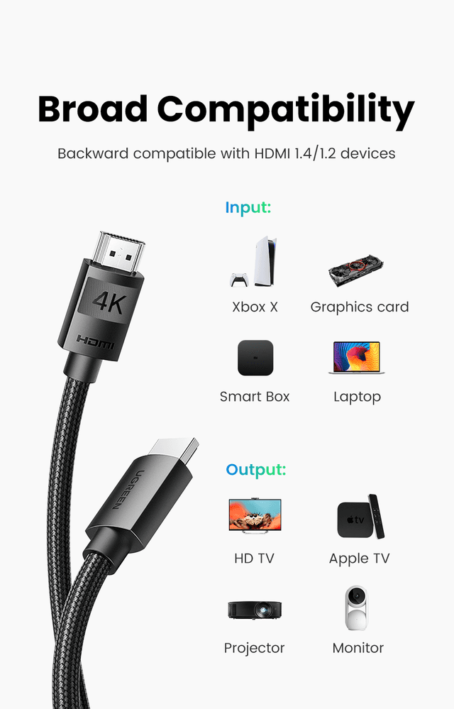 UGREEN 4K HDMI Cable Male to Male Braided 2m