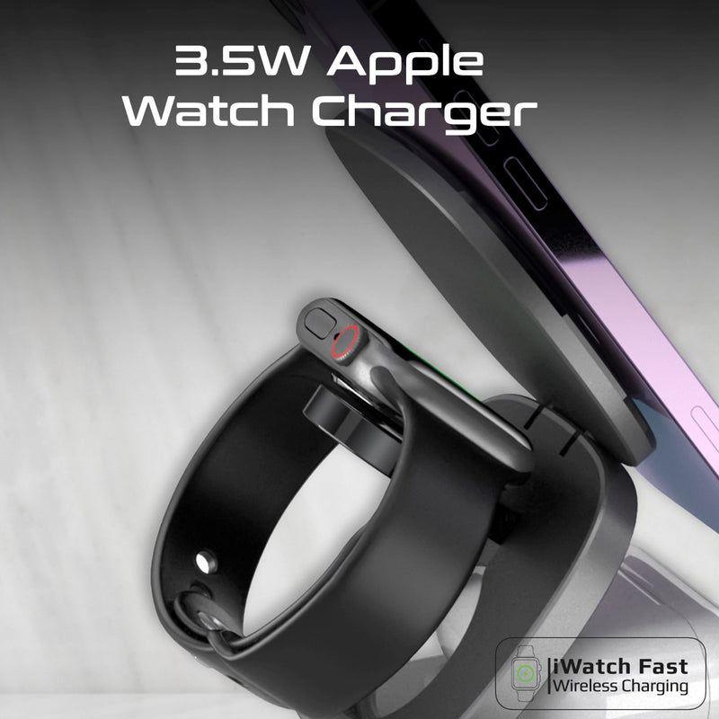 5‑in‑1 charging station: smartphone, smartwatch, earbuds, and two high-speed wired ports.
