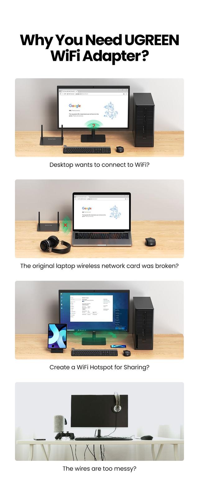 Widely Compatible: UGREEN USB wifi adapter can support Windows 11/10/8.1/8/7. which can easily install the driver through our instructions.