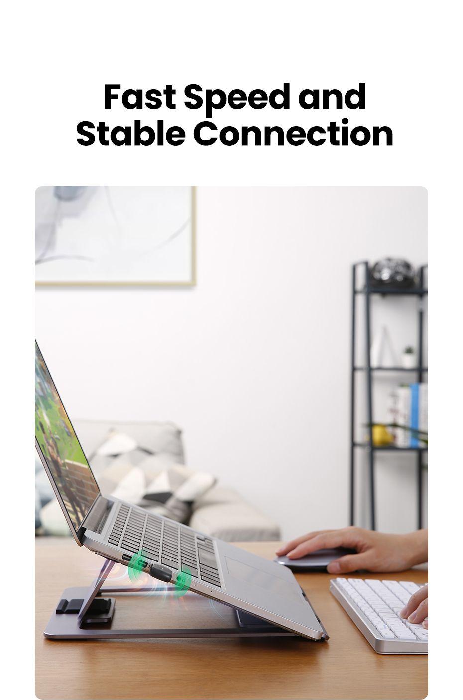 5G/2.4G Dual Band: UGREEN USB Wifi Adapter for Desktop PC supports both 2.4GHz and 5.0GHz bands at the same time, and can switch automatically in different situations. So that the network can always be fast and stable.