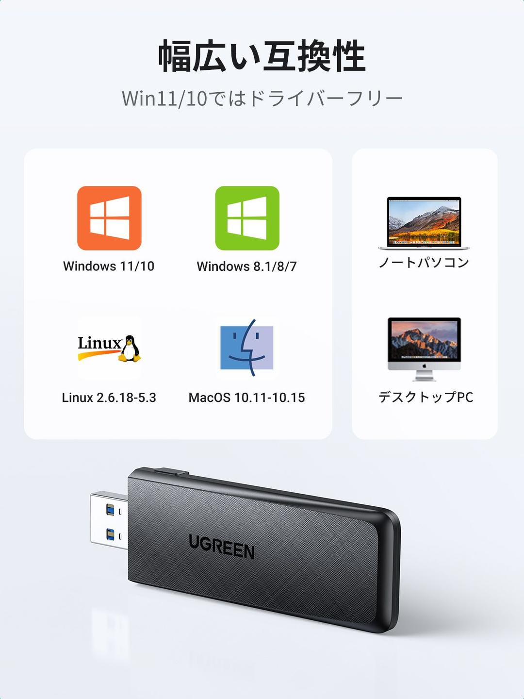 Widely Compatible: UGREEN WiFi Adapter for Desktop PC can support Windows 11/10/8.1/8/7, and Mac 10.11 and above systems. Only Windows 11/10 can be used without the driver, other systems can easily install the driver through our instructions of User Manual. (Doesn't compatible with the Macbook with M1/M1 Pro/M1 Max Chip)