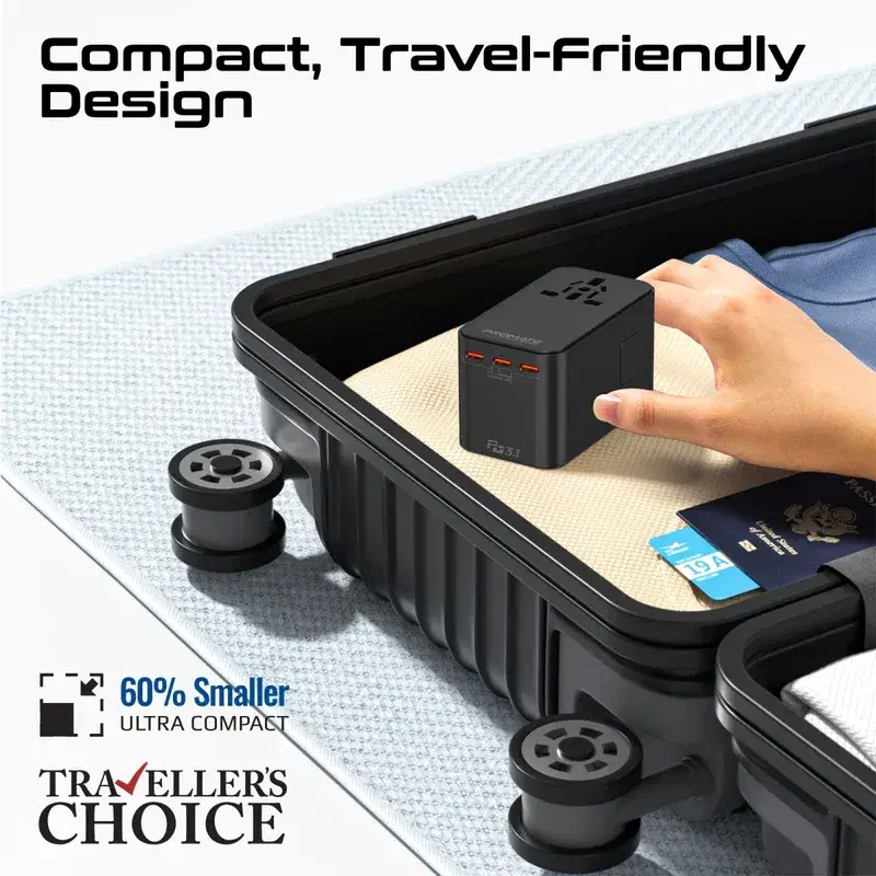 Travel-ready with US/UK/EU/AU plugs.