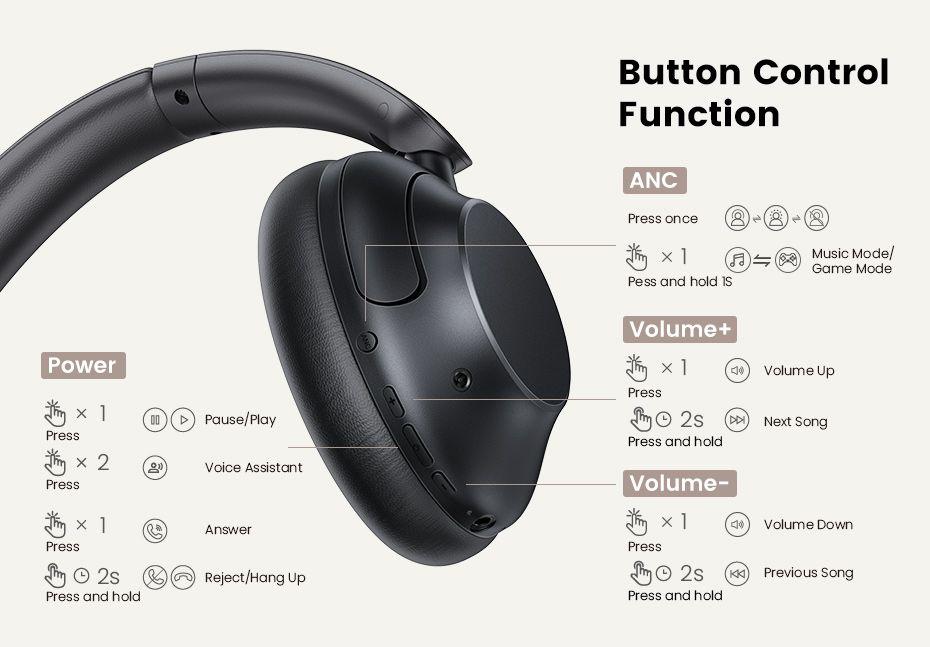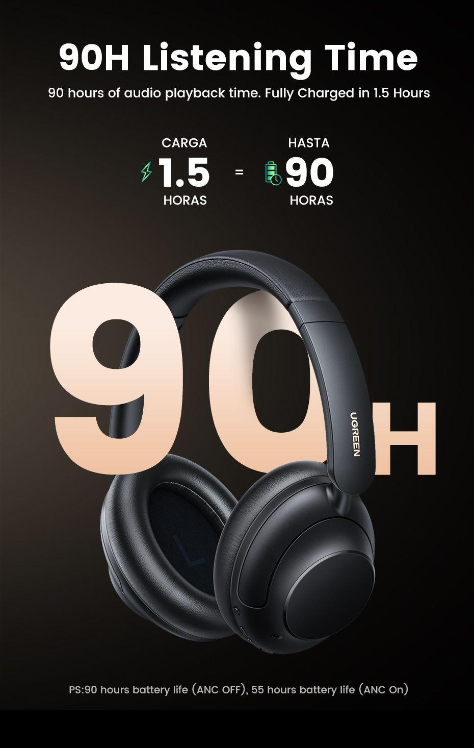 UGREEN Wireless Over-Ear Bluetooth Headphones with 90 Hour Playtime and Active Noise Cancellation