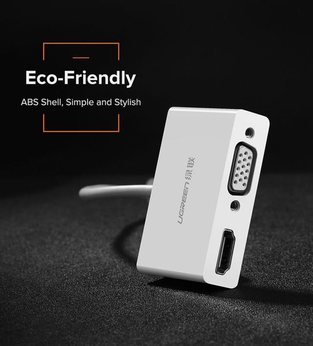 UGREEN USB Type C To HDMI + VGA Converter, 15cm - White