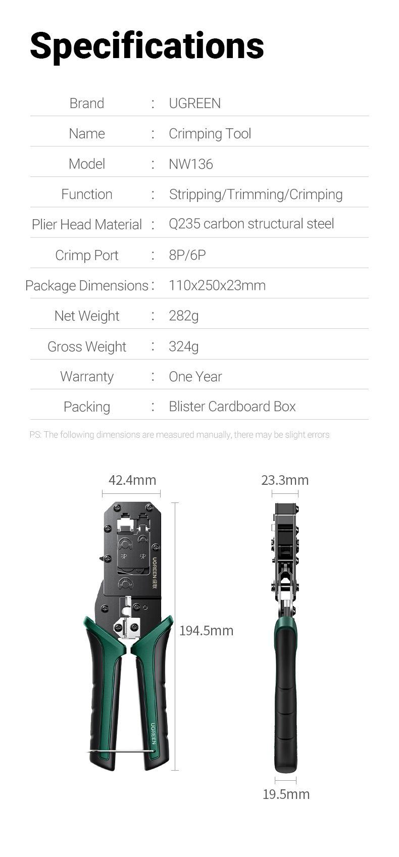 UGREEN NW136 Ethernet connector crimping pliers (black/green) 70683