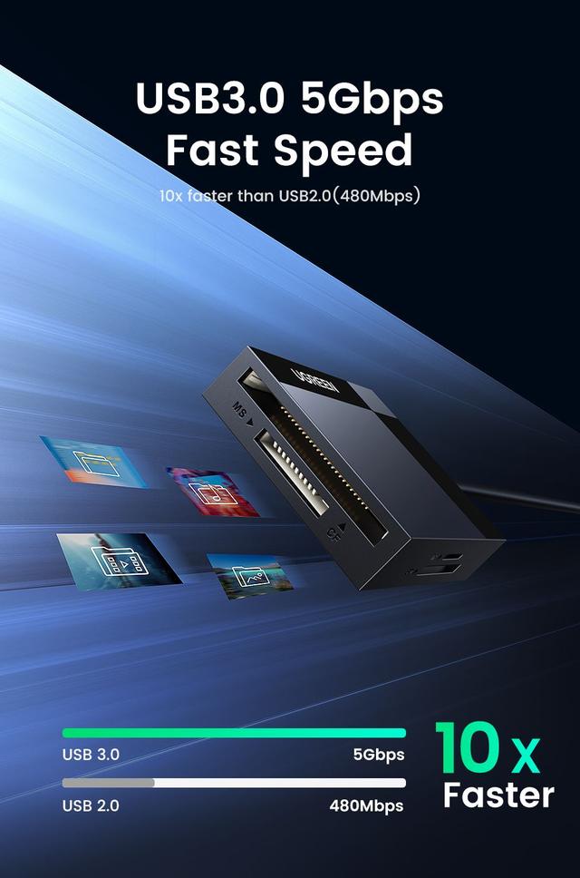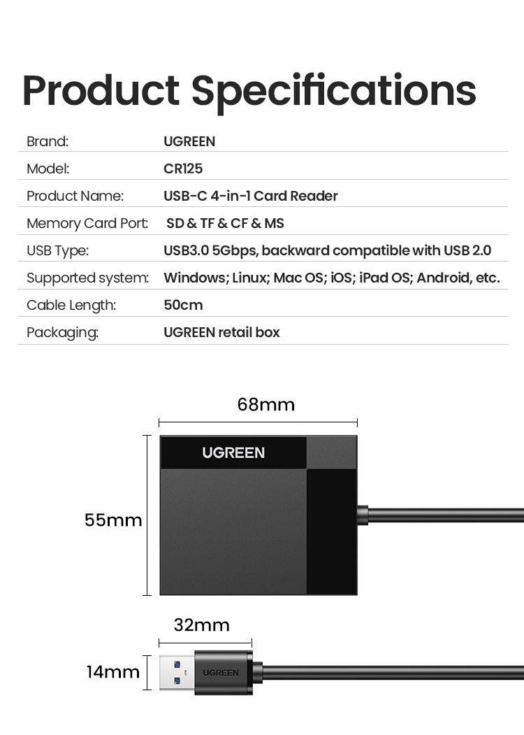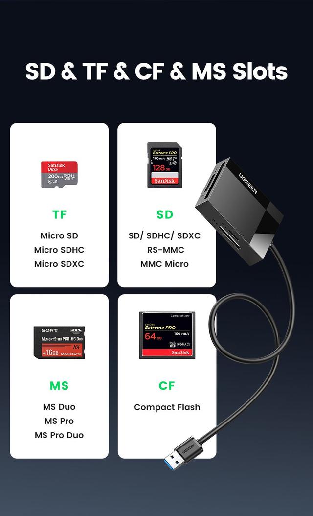 UGREEN Card Reader 4-in-1 USB 3.0 USB-C SD CF Micro SD TF MS Adapter 2TB