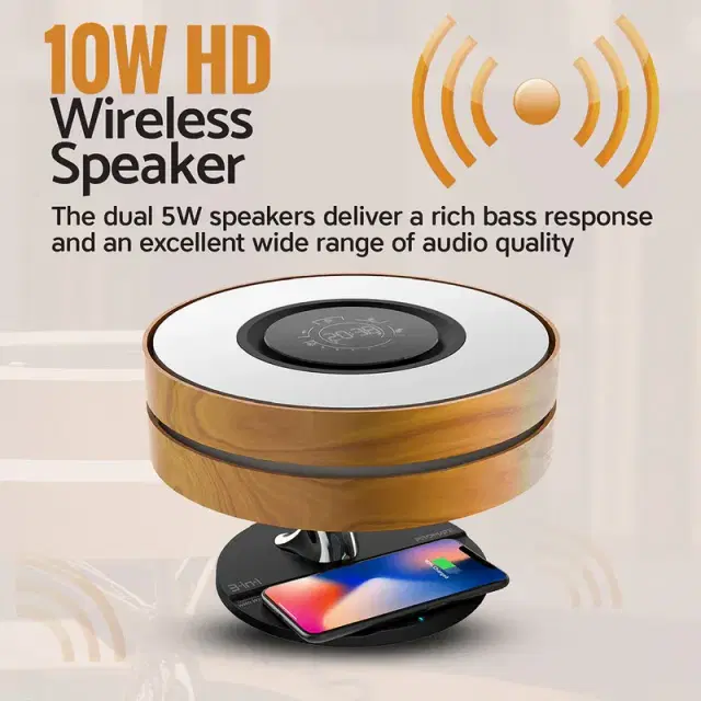 3-in-1 Contemporary Designed Wireless Speaker with Desk Lamp and Wireless Charger