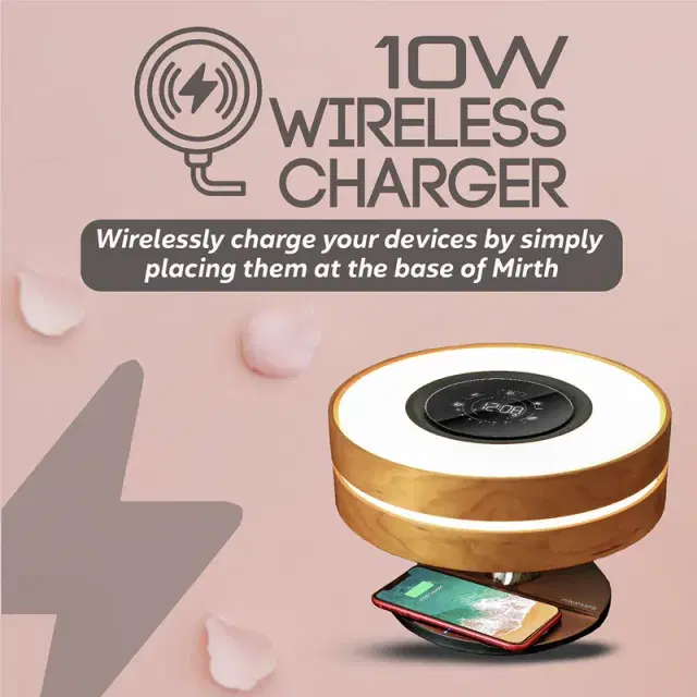 Mirth is an LED night lamp with multiple uses. Control the brightness of the lamp with a simple touch. It is also a Bluetooth speaker that adds the right music with the perfect ambience. C connect Mirth to your smartphone, tablet or computer and enjoy the music. At the base of the lamp, you can wirelessly charge your favourite devices. With all these functions compiled in one single body, it is a must-have for every household or office.