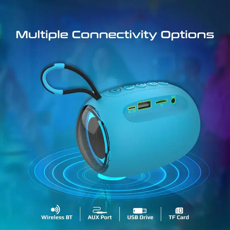 Experience pure sound bliss with Capsule-3 which not only provides unparalleled audio with its 5W speaker output but also entertains with stunning RGB lights. Enjoy limitless entertainment anywhere by easily switching between Bluetooth v5.3, TF Card slot, USB Media Port, or directly via AUX port. Connect two Capsule-3 speakers and enjoy True Wireless Technology and experience crystal clear sound. Capsule-3 is housed in a portable-sized enclosure along with handle support to ensure portability. With 10 meters of wireless range and up to 6 hours of continuous playtime, you can enjoy your tunes with ease.