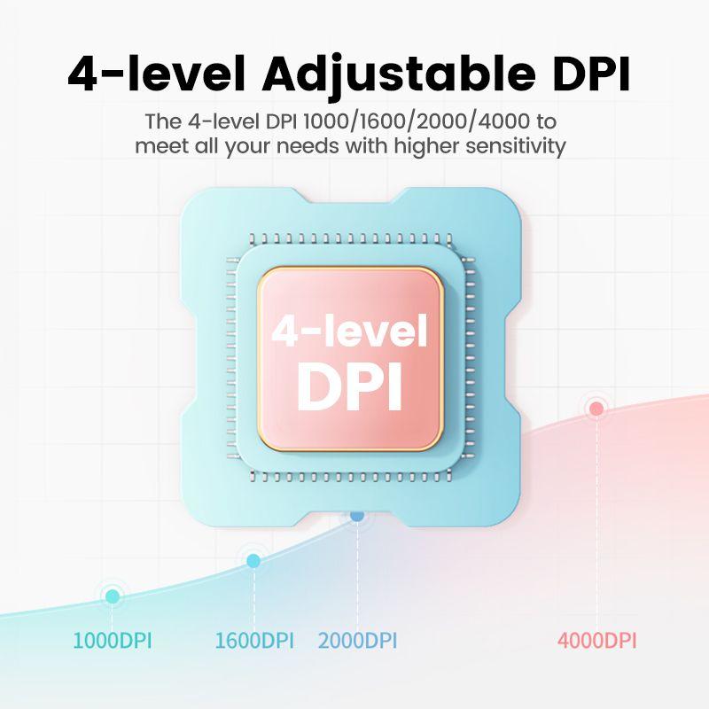 The Ugreen mouse offers adjustable DPI of 1000/1600/2000/4000, making it ideal for a variety of applications - from casual Internet browsing to advanced graphics tasks. What's more, it guarantees precision on a variety of surfaces, providing freedom and flexibility in use.