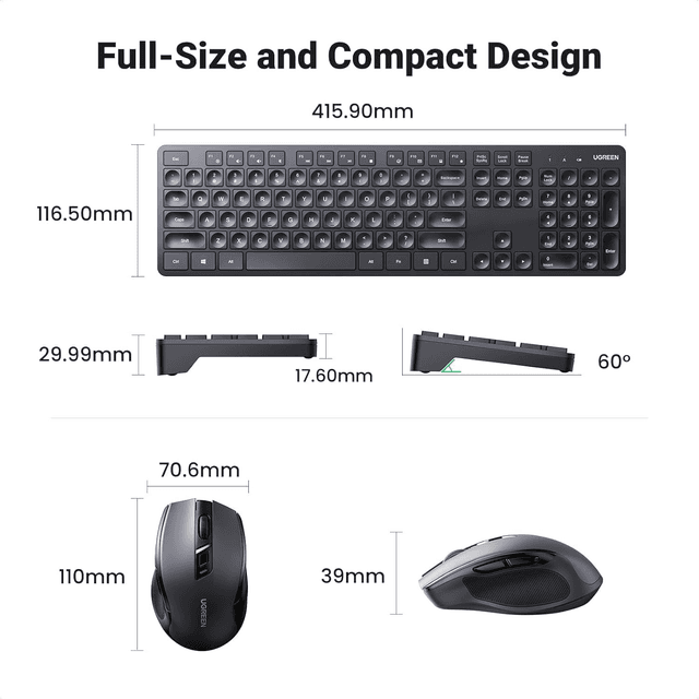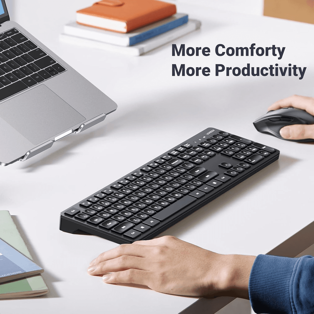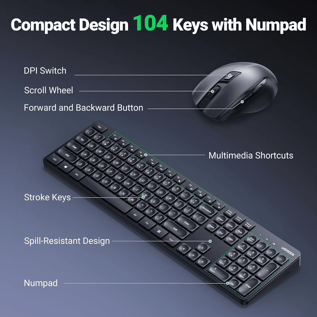 UGREEN Wireless Keyboard and Mouse Combo,2.4GHz Ergonomic Keyboard Mouse, Compact Silent Cordless Full Size Computer Keyboard, Mouse 5 DPI Levels up to 4000, for Computer, Laptop (Arabic)