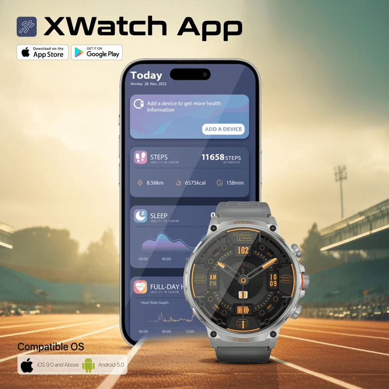 Built for the bold, the XWatch-R20 by Promate is your ultimate companion for an active lifestyle. With over 100 sports modes, heart rate, pedometer, blood pressure, and blood oxygen sensors, it keeps you on top of your health game. Enjoy seamless Bluetooth calling, sleep tracking, and a vibrant 1.85" TFT display. The long-lasting 710mAh battery ensures up to 10 days of use or 60 days on standby. Crafted with a durable metallic frame and a removable UV-coated silicone strap, it's IP67 water-resistant, ready to tackle anything your day throws at you. Stay active, stay connected.