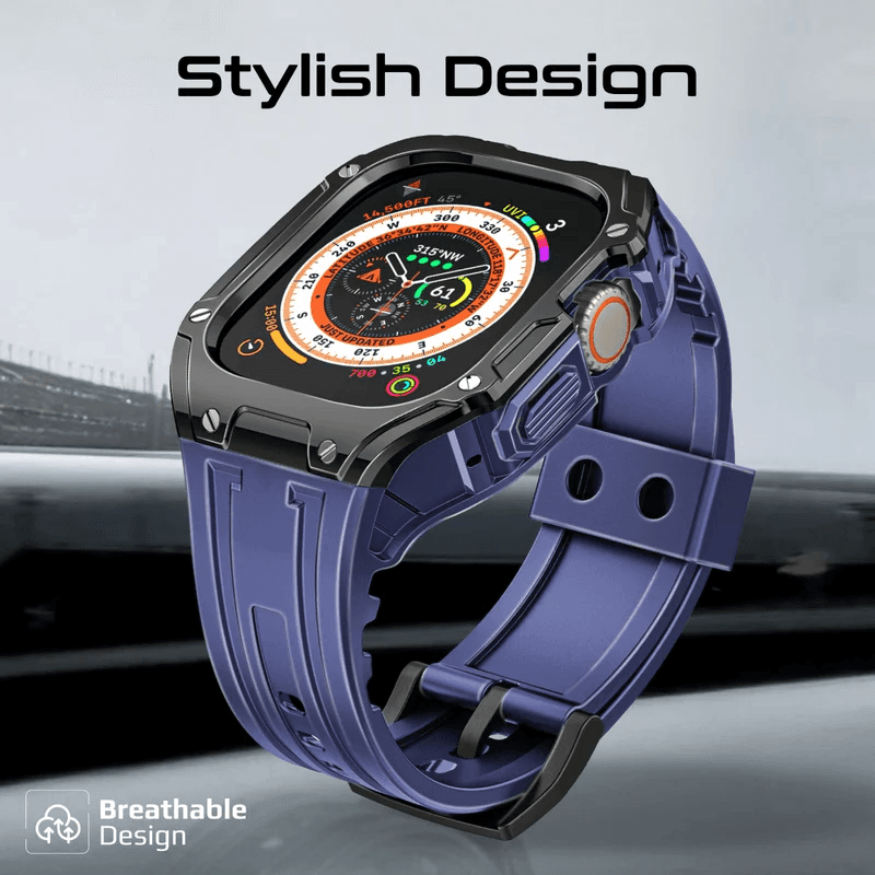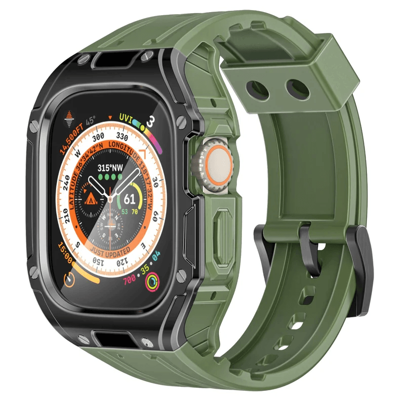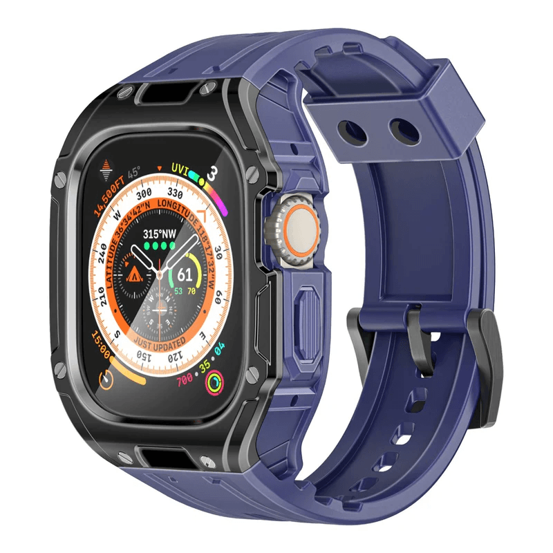 Elevate your Apple Watch game with Promate's CaseBand, a sleek blend of style and protection that redefines wristwear elegance. Meticulously crafted from durable PC, shock-resistant TPU and bolted together with corrosion-resistant 316 stainless steel, this fashionable accessory not only safeguards your watch but also makes a bold style statement. Its versatile design accommodates (49mm) Apple Watch size and is fully compatible with Apple Watch Ultra 1-2 Series, offering unparalleled adaptability for every watch enthusiast. The CaseBand’s bold aesthetics ensure you stand out in any crowd, while its robust triple-layer construction provides maximum protection against scratches, bumps, and daily wear. Experience the perfect harmony of style and protection that transforms your Apple Watch into a true reflection of your personal style with Promate's CaseBand.