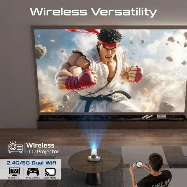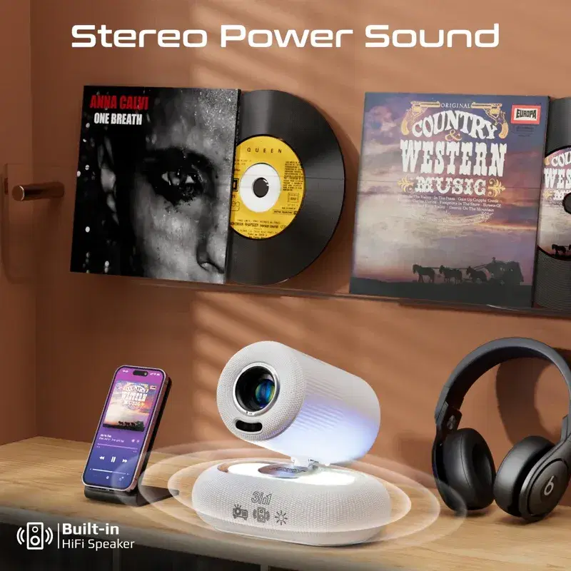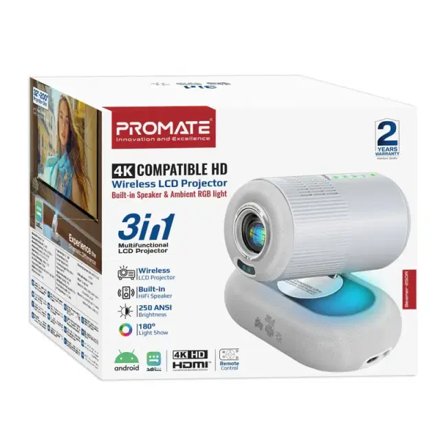 Promate Beamer‑250R – Wireless 4K‑Ready LCD Projector with Ambient RGB Lighting