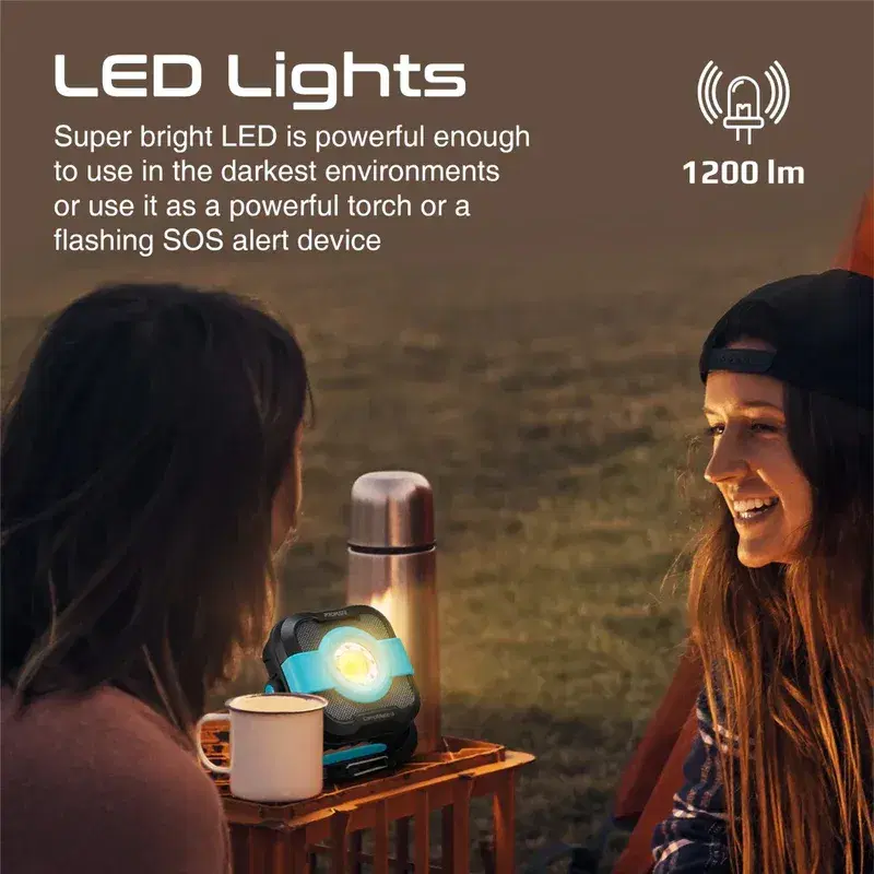 Built‑in power bank (9000 mAh): Charges phones/devices when you’re off the grid.