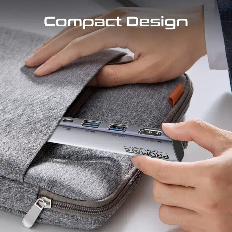 Introducing Promate’s LinkHub-5X, the ultimate multi-function USB-C Hub designed to streamline your connectivity needs. With its powerful 100W USB-C Power Delivery capability, it not only charges your devices rapidly but also ensures seamless data transfer through its 5Gbps USB-C Data Transfer Port and dual 480Mbps USB-A Ports. Enjoy crisp, high-definition visuals with the 4K@60Hz HDMI Port, perfect for presentations or movie nights. Its compact design makes it ideal for both home and office use, while its plug-and-play feature ensures effortless setup, allowing you to stay focused on what matters most. Simplify your connections with LinkHub-5X and experience unparalleled convenience.