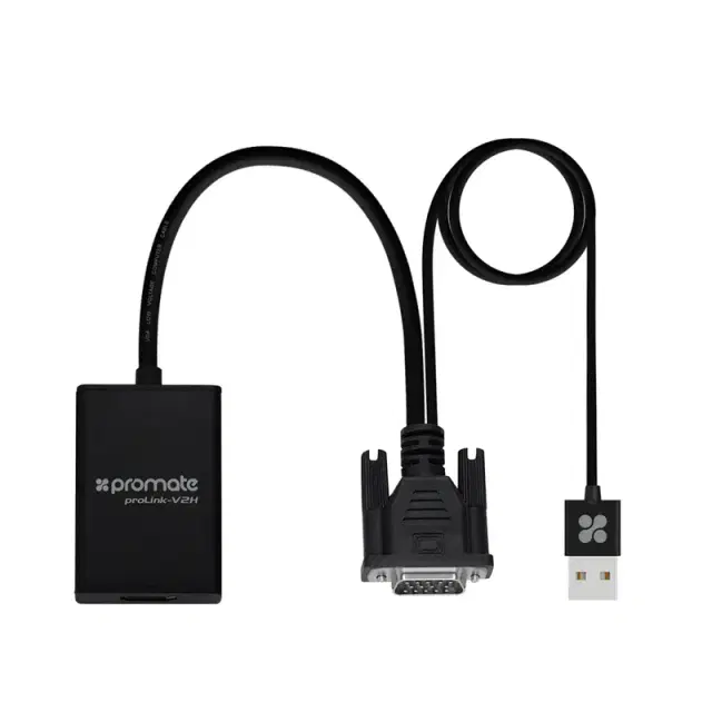 The ProLink-V2H VGA to HDMI® Adapter lets you convert the VGA port on your desktop or laptop computer to an HDMI® output. With the ProLink-V2H, you can expand your VGA port to accommodate the growing number of monitors and projectors that only support HDMI®. This adapter ensures you get the highest video quality from your VGA port, with support for resolutions up to 1920x1080 (1080p). Thanks to the built-in USB power cable, the device is powered by your computer's USB port. The VGA to HDMI® Adapter works with any operating system, but when working with a Windows® computer, the adapter supports native USB audio, allowing you to add your computer's audio to the HDMI® signal.