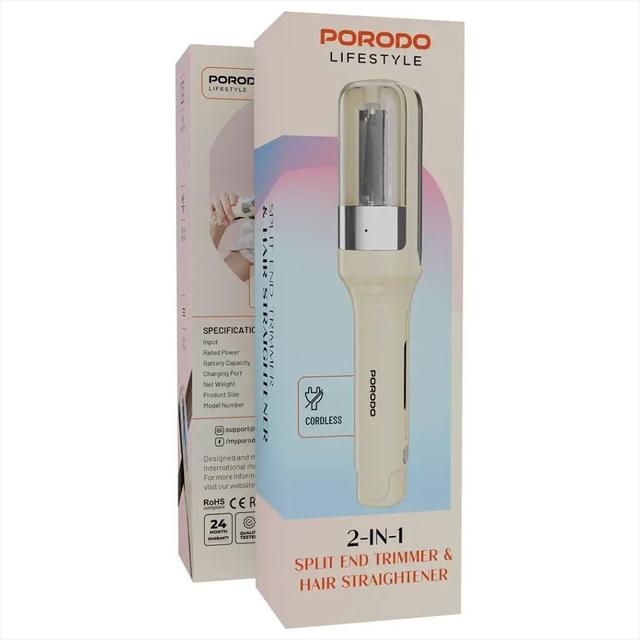Porodo Lifestyle PDLFSTHSETWH 2-in-1 Split End Trimmer & Hair Straightener – Smooth, Healthy Hair Anytime