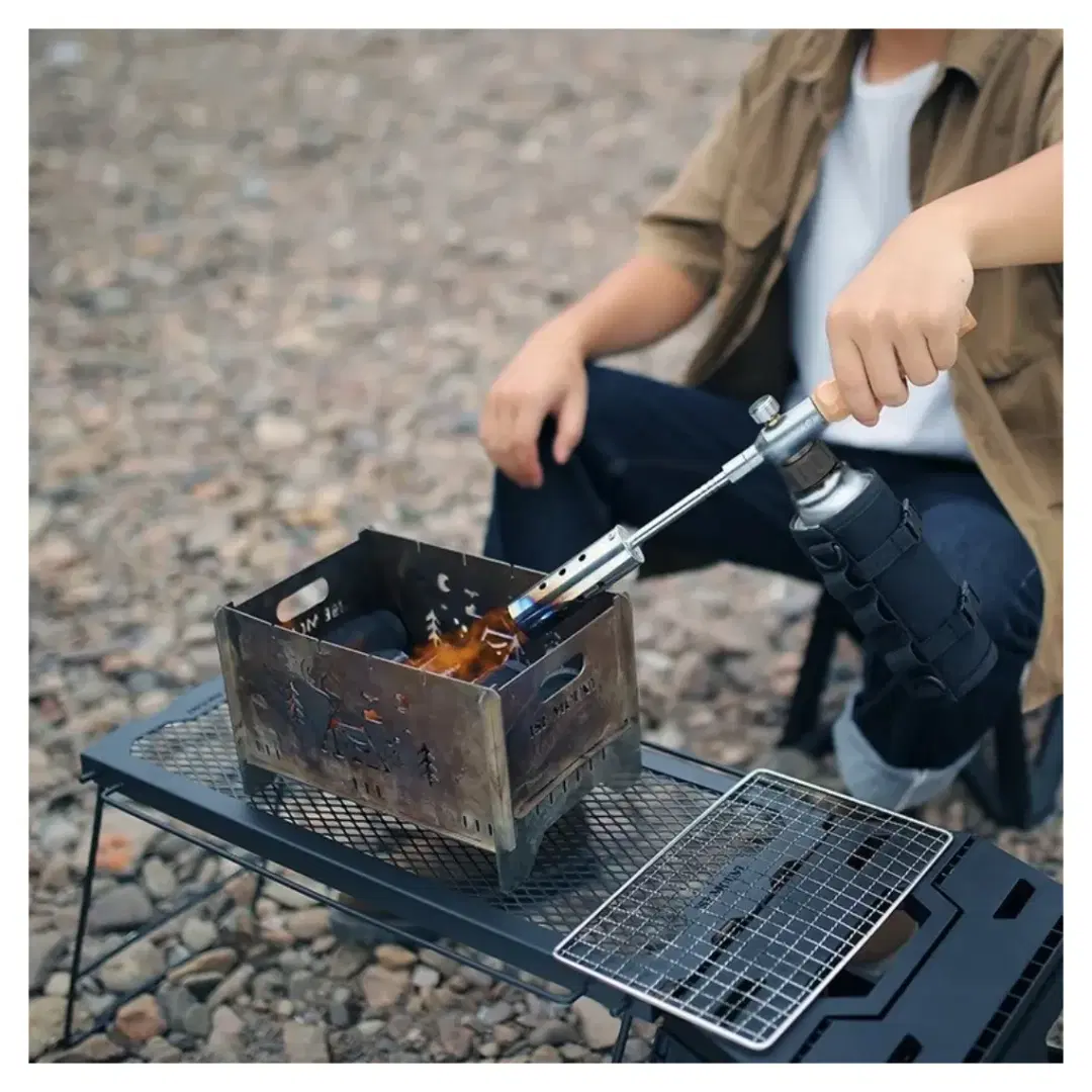Made of aluminum alloy with a comfortable wooden handle, it features an adjustable length up to 60 cm for a safe distance while operating. It also includes a precision valve for flame control and a windproof design for stable use.