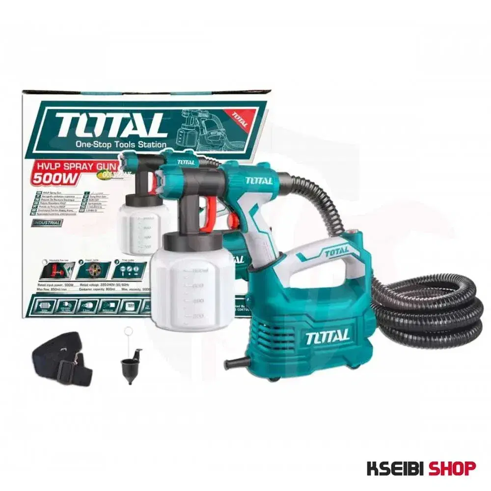 This powerful spray gun is a floor-standing sprayer with a comfortable pistol grip, designed for applying paint layers to various surfaces. The power of this device is 550 watts, the spray pressure is 0.1-0.2 bar, which provides a capacity of 850 ml per minute. The working capacity is 800 ml, the spray nozzle diameter is 0.6/0.8 mm, the cable length is 2 meters, the maximum viscosity of the spraying liquid can reach 50 units, and a viscometer is included. In addition, a cleaning needle and a shoulder strap are provided with this spray gun.