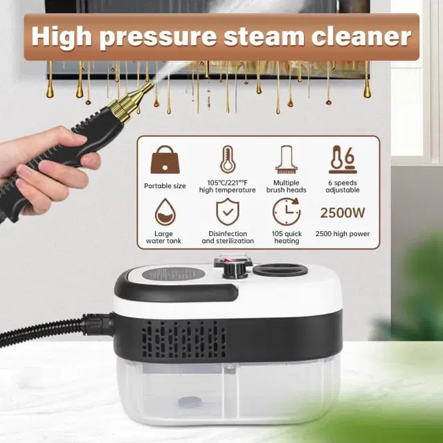 [High Temperature & Pressure Steam] 2500W high power can generate 229°F/105°C high temperature and 3BAR pressure steam within 10s, effectively remove stubborn greasy dirt and stains.