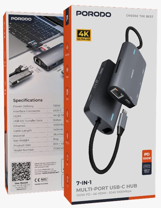 Porodo 7-in-1 Multi-Port USB-C Hub – All in One