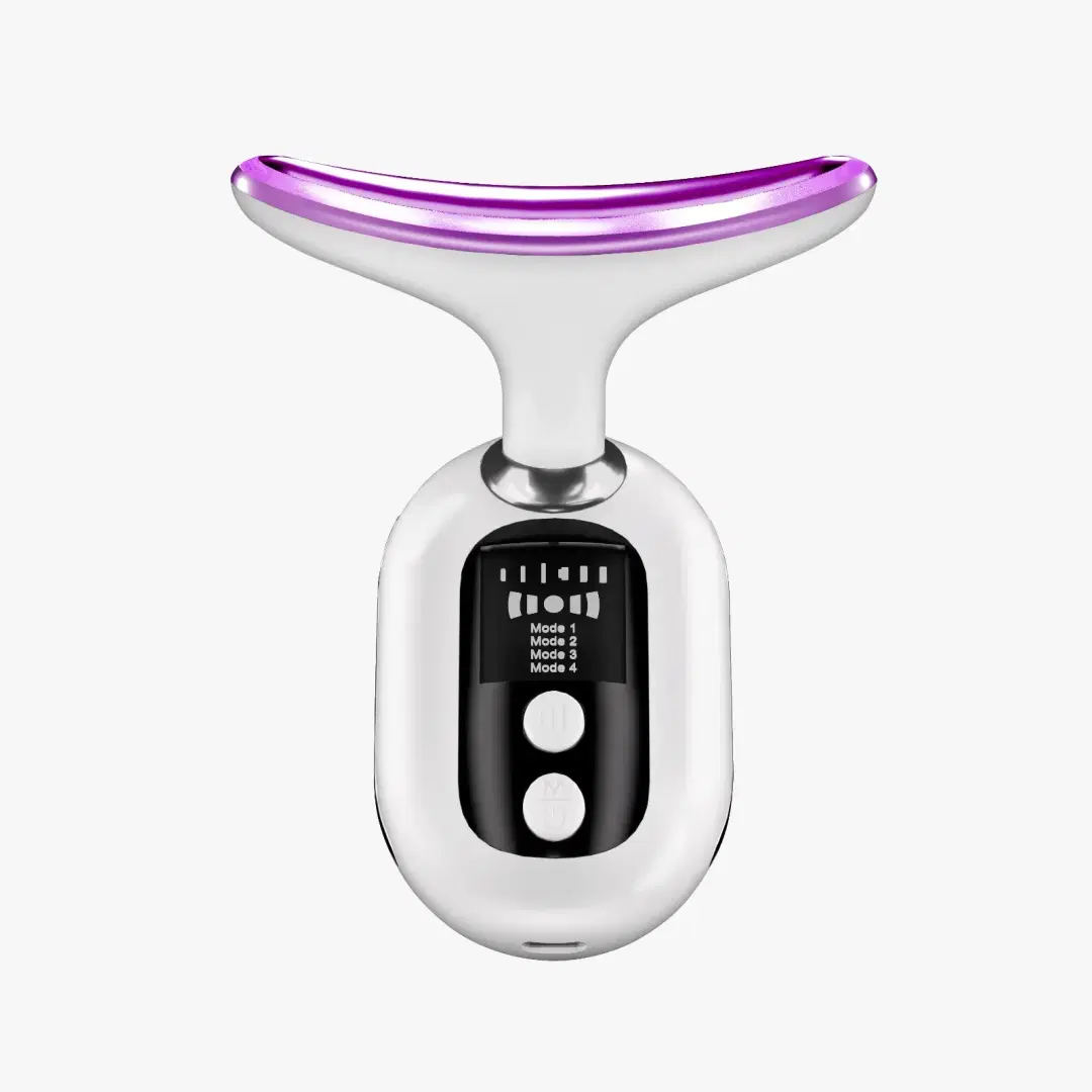The Porodo Lifestyle Face & Neck Light Therapy Massager is a soothing and efficient way to relieve tension and refresh your skin. This massager has three light settings: purple, red, and blue. Each one gives different treatment options for your skincare needs. This massager has four speed levels. It works for a long time with a 450mAh battery. Recharge using the Type-C charging interface. A full recharge takes three hours. The massager offers ion deep cleansing, skin-firming vibrations, and warm massage treatment. The different settings result in radiant and healthy skin. The device is lightweight and small, so it is convenient to use anywhere. The Porodo Lifestyle Face & Neck Light Therapy Massager is the perfect tool to enhance your skincare routine, helping you look and feel refreshed.
