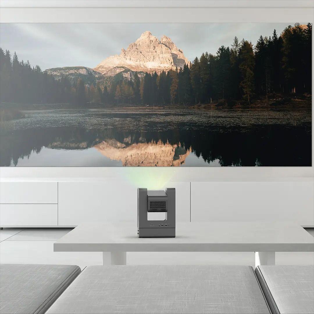 The Powerology VisionArc portable smart projector in gray brings the cinematic experience to your home or wherever you go. Featuring a 3-inch LCD screen with excellent 4K support and a maximum resolution of 1080p, and with 300 ANSI lumens of brightness, it's the perfect projector for vivid visuals. It covers all sizes from 43 inches to 200 inches, with a projection distance of 1.3 meters to 5 meters and a 1.25:1 aspect ratio. Automatic angle correction and four-point alignment ensure a perfectly aligned image. The projector runs on Android 12, has 1GB of RAM, and 32GB of ROM. It also supports Wi-Fi 6 and Bluetooth 5.0, making connectivity incredibly easy. Two 5W SRS audio drivers deliver clear sound, and the projector has a 192.96Wh battery, allowing for up to 2.5 hours of use on a single charge. With its versatile inputs (USB, HDMI, Type-C) and wireless screen mirroring feature, VisionArc is a great option not only for entertainment but also for professional purposes.
