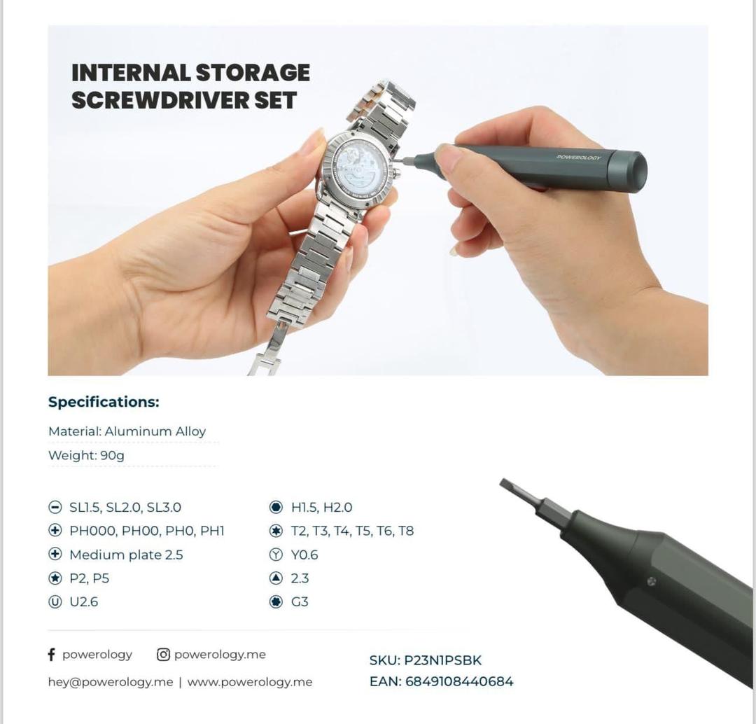The Powerology Internal Storage Screwdriver Set is going to enhance your toolbox. This set is made from a high-quality aluminum alloy and is built to last, providing reliability and strength. With its 22 double-ended bits, you have a wide range of solutions for any DIY or repair project you might face. There are no more lost pieces or wandering about trying to find the proper one thanks to its magnetic storage, which guarantees that all your bits are safely kept and easily accessible whenever you need them. This kit is also lightweight and portable, making it an ideal companion for all your tasks at home or operations at work. Make your activities simpler and more efficient by taking advantage of the Powerology Internal Storage Screwdriver Set's comfort and toughness.