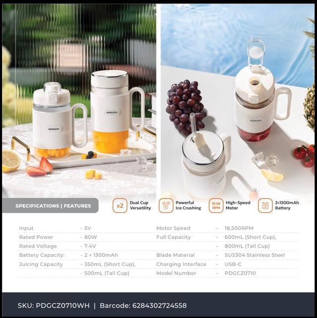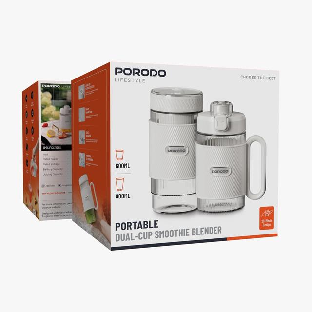 Porodo PDGCZ0710WH Lifestyle Portable Dual-Cup Smoothie Blender