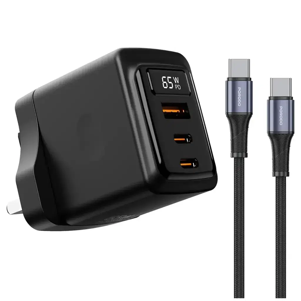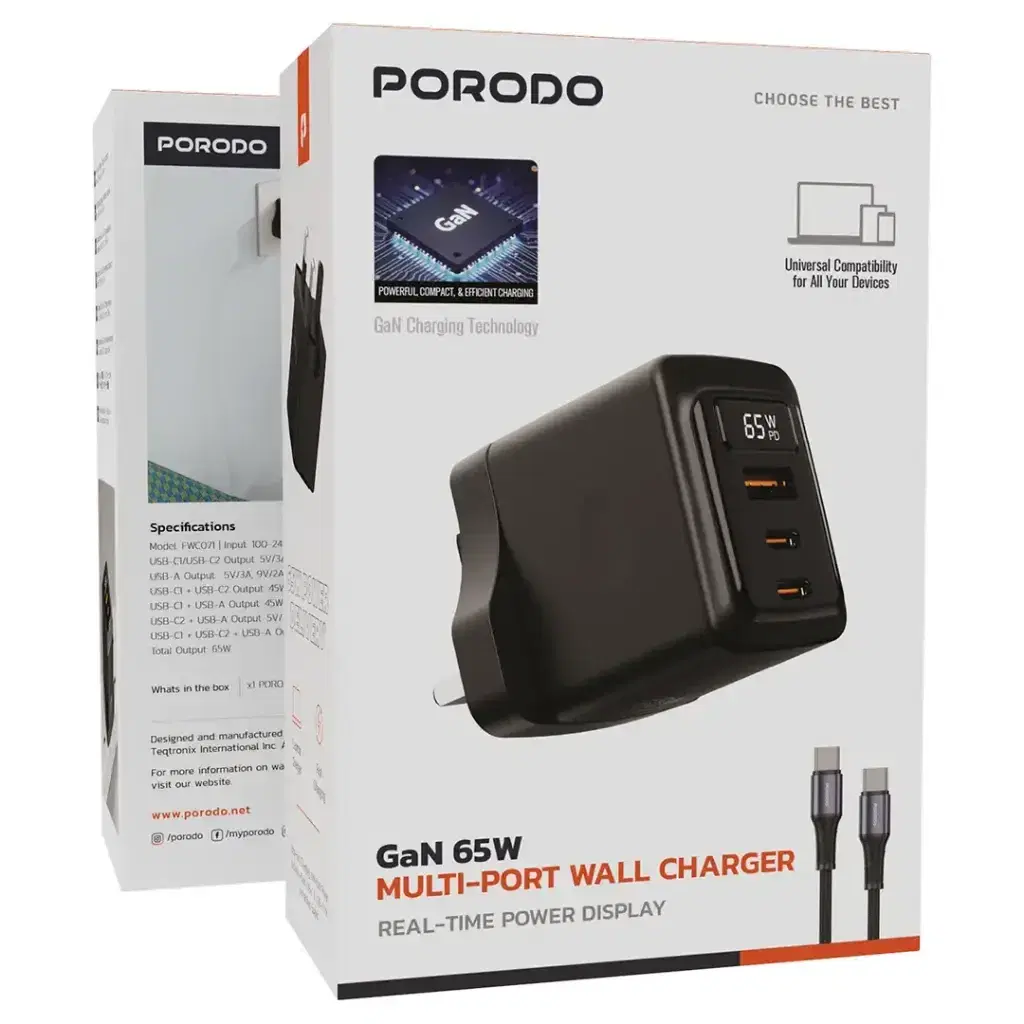 Porodo GaN 65W Multi-Port Wall Charger PDFWCH071CBK