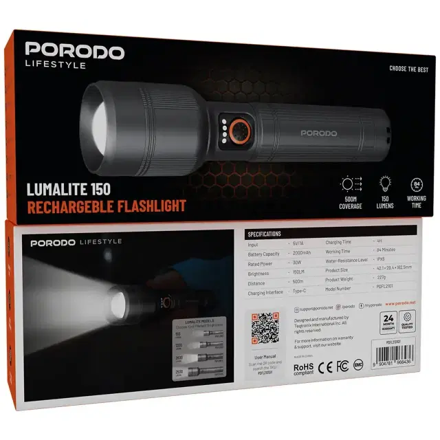 Porodo PDFL5102GY Lumalite 2500 – High-Power Rechargeable Flashlight